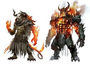 Когти пламени. Рукопашная атака оружием: +6 к попаданию, досягаемость 5 футов, одна цель. Попадание: Рубящий урон 6 (1к6 + 3) плюс (2к6) урона огнем.
