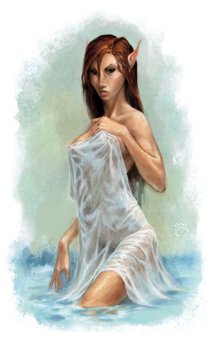 Внешний вид. Лицо Нимфы внешне очень похоже на эльфийское. Их лица угловатые, с высокими скулами и эльфийскими ушами. Нимфы достигают такого же роста и веса, как и эльфийки. Связь нимф с природой означает, что они предпочитают не носить одежду, делая это только в присутствии тех, кого уважают, и только по особой просьбе этих существ.