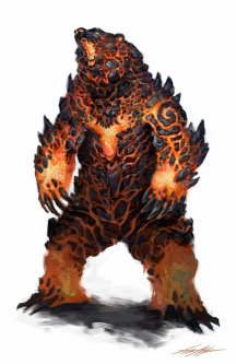 Огненное дыхание (перезарядка 5–6). Медведь выдыхает поток пламени 15-футовым конусом. Все существа в этой области должны совершить спасбросок Ловкости Сл 12, получая урон огнём 17 (5к6) при провале, или половину этого урона при успехе.