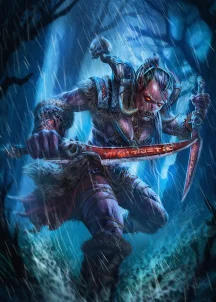 Когда мечник в плаще пробирался через оживлённую рыночную площадь, его глаза на мгновение вспыхнули зелёным. Он мог видеть безошибочную ауру тайной магии, окружающую непритязательного дварфа, притворяющегося, что он покупает товары. Воин нашёл свою цель. Когда он вытащил свой рунический клинок, то, что всего несколько секунд назад казалось крестьянином-дварфом, вернулось к своей истинной форме. Когда чудовищный дьявол бросился вперёд, мечник в капюшоне схватился за клинок и приготовился к битве.