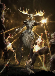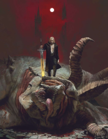 С боевым топором в руке массивный тифлинг безжалостно обезглавливает зверя, после чего прыгает на другого, вонзая посеребренное оружие в грудь существа и оставляя кровоточащую рану от шеи до паха.