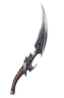 - Скимитар наносит дополнительно 1к6 рубящего урона целям, у которых меньше половины хитов. Каждый раз, когда вы убиваете существо скимитаром, вы получаете сопротивление немагическому урону до начала вашего следующего хода.
