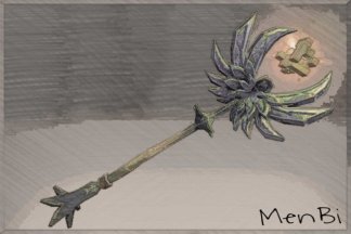Этот посох сделан из сплава неизвестных металлов. На его изголовье левитирует небольшая головоломка - куб, от которой исходит тусклый свет.