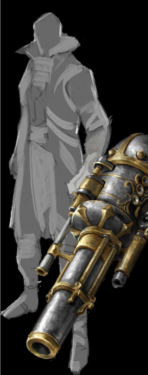 Эта пушка, инкрустированная лунным золотом, дополнительно наносит 1к4 урона любым негуманоидным существам, по которым попадает. Лунное золото действует как путеводный свет в темноте; существа, держащие или носящие лунное золото, с преимуществом совершают спасброски от испуга и безумия.