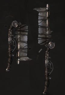 Вместо того чтобы отдельно носить с собой огнестрельное оружие, которое часто становится неэффективным, при сближении со зверьми, многие охотники прячут его внутри огромных тесаков, предназначенных для раздирания плоти. Такие творения из пороха и металла метко называются нарезными ножами.
