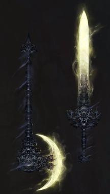 Обе формы оружия дополнительно наносят 1к6 урона излучением при попадании. Этот урон увеличивается до 2к6 для длинного меча при атаках совершаемым по аберрациям Среднего размера или меньше, и до 2к6 для боевого топора при атаках совершаемым по аберрациям Большого размера или больше.