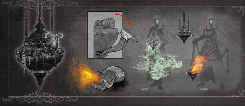 Раздувание пламени. Действием вы можете начать яростно вращать колыбель вокруг себя, раздувая пламя. Каждое существо в 20-футовом конусе перед вами должно совершить спасбросок Ловкости Сл 16, получая 3к6 урона огнём и 3к6 урона ядом в случае провала или половину этого урона в случае успеха. Звери и Нежить с помехой совершают данный спасбросок. После использования этого свойства колыбель сироты возвращается в свое нетрансформированное состояние и не может быть трансформирована снова в течение 1к4 - 1 раундов.