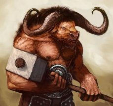 Минотавры – крепкие гуманоиды с широкой грудью и головами похожие на бараньи. Их рога сильно закручиваются вокруг ушей, а грива из лохматого меха – более короткая у самок – падает на их плечи. Как и предполагает их внешний вид, они сочетают в себе физическую силу с упрямством, бравадой и безрассудной храбростью. Они упиваются битвой, особенно если ситуация не в их пользу.