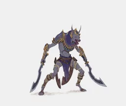 Хенра, сфокусированые на ближнем бое предпочитают использовать хопеш - длинный серповидный меч, как своё главное оружие (считается длинным мечом). Хенра орудуют этими мечами с ужасающей точностью и силой нанося ужасающие удары один за другим в потоке яростных атак. Они предпочитают лёгкую броню, которая не стесняет их движения, считая организованный строй не больше, чем поводком, который ограничивает их выпады, контратаки и отступления. Их природная агрессия делает их идеальными штурмовыми солдатами, разведчиками и застрельщиками. И эта агрессия ещё сильнее наблюдается в хенра, потерявших своих близнецов, которые порой теряют свой инстинкт самосохранения.