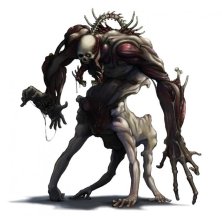 • Бескостный. Сокрушительные объятия. Бескостный оборачивает своим телом существо Большого или меньшего размера, схваченное им. Пока бескостный прикреплен, цель ослеплена и не может дышать. Она также должна совершать спасбросок Силы Сл 13 в начале каждого хода бескостного, получая при провале 1к4 дробящего урона. Если что-то перемещает цель, бескостный двигается вместе с ней. Бескостный может отделиться, потратив 5 футов своего перемещения. Существо, в том числе цель объятий, может действием попытаться отделить бескостного и заставить его переместиться в ближайшее свободное пространство, делая это при успешной проверке Силы Сл 13. Когда бескостный умирает, он отделяется от любого существа, к которому привязался.