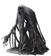 Агония [Agony]-Бестелесное перемещение. Привидение может перемещаться сквозь других существ и предметы, как если бы они были труднопроходимой местностью. Оно получает урон силовым полем 5 (1к10), если оканчивает ход внутри предмета.(2 части)