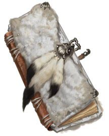 Белоснежный кодицил - это длинный, тонкий том, переплетенный в белый горностаевый мех поверх выдержанных досок из белой сосны и запечатанный застежкой и замком из потускневшего серебра. Книга холодна на ощупь, а мех потерт по краям от использования. Двадцать семь страниц внутри из пергамента, расписанного серебряной позолотой по внешним краям. Все они пришиты к кожаному переплету полосками сухожилий, что делает книгу довольно прочной.