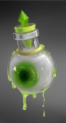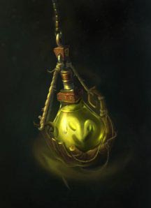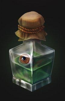 • Выпив это зелье, вы получаете эффект заклинания подсматривание [clairvoyance]. В желтоватой жидкости зелья плавают глазные яблоки, но они исчезают, когда пузырёк открывают.
