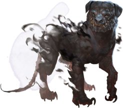 Эти чёрные псы из Царства Теней двигаются невидимо по теням и всегда охотятся. В мрачных местах, где завеса между Царством Теней и Материальным Планом тонка, они могут пересекать её и попадать в темные уголки мира.