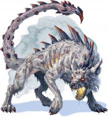 — ТашаШусува – это демон–гиена, которую дарит Йеногу особенно могущественному последователю (обычно гнолл клык Йеногу [gnoll fang of Yeenoghu]). Шусува появляется вскоре после того, как боевая банда одержит большую победу, выходя из клубящегося зловонного облака дыма, прибывая из Бездны. В битве демон хватает своими огромными челюстями одну жертву, тем временем втыкая ядовитое жало на своем хвосте в другую. Обездвиженное ядом существо становится легкой жертвой для любого члена боевого отряда поблизости.