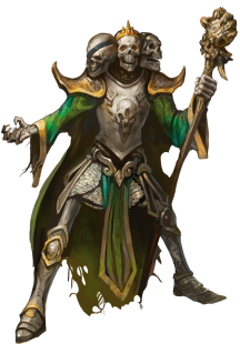 • Легендарное сопротивление (3/день). Если лорд черепов проваливает спасбросок, он может вместо этого сделать спасбросок успешным.