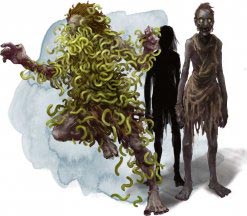 Роющий червь. Из отродья Кьюсса червь запускается в одного гуманоида, которого отродье может видеть не далее чем в 10 футах от себя. Червь закрепляется на кожу цели, если только цель не преуспеет спасбросок Ловкости Сл 11. Червь является Крошечной нежитью с КД 6, 1 хитом, 2 (–4) в каждой способности и скоростью в 1 фут. На коже цели червя можно убить обычным способом или сорвать, использовав действие (отродье может использовать это действие, чтобы запустить оторванного червя в гуманоида, которого может видеть не далее 10 футов от червя). В другом случае червь зарывается под кожу цели в конце следующего хода цели и наносит ей 1 колющего урона. А конце каждого последующего хода цель получает 7 (2к6) урона некротической энергией за каждого червя, который её заразил (максимум 10к6). Зараженная червем цель умирает, если её хиты падают до 0, а через 10 минут поднимается как отродье Кьюсса. Если зараженное червем существо является целью эффекта, который вылечивает болезнь или снимает проклятие, то все черви внутри отмирают.