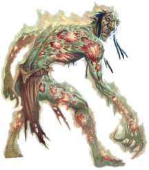 Гнилой тролль. Рано или поздно, у гнилого тролля пропадает способность к регенерации, хотя заживление всё ещё проходит нормально. Из существа излучается некротическая энергия, текущая внутри его сморщенной туши. Просто находясь рядом с гнилым троллем, другие существа подвергаются его смертоносному излучению.