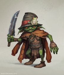 После того как мой товарищ решил сделать пивного кентавра-монаха я подумал "А почему бы не сделать карлика монаха?". По итогу получился гоблин монах который из-за своей тупости не вдупляет в чем суть жизни. А бой больше напоминает на отыгрыш плута на начальных уровнях (спрятался-кританул). В принципе для меня это лучшая раса с клеймом "карлик" (до этого это были совлины).