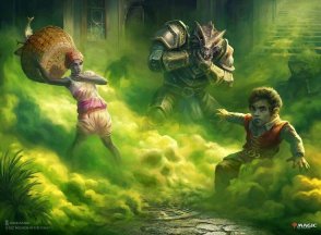 Вы создаете сферу с радиусом 20 футов из ядовитого жёлто-зелёного тумана с центром на точке, выбранной вами в пределах дистанции. Этот туман огибает углы. Он существует, пока активно заклинание, или пока сильный ветер его не развеет, окончив длительность. Его пространство — сильно заслонённая местность. Когда существо впервые за ход входит в область заклинания или начинает там ход, оно должно совершить спасбросок Телосложения. Существо получает 5к8 урона ядом при провале или половину этого урона в случае успеха. Существо попадает под действие заклинания даже если задерживает дыхание или вообще не должно дышать. Облако в начале каждого вашего хода перемещается на 10 футов прочь от вас, катясь по поверхности. Испарения, будучи тяжелее воздуха, стекаются вниз и даже могут проникать в отверстия.